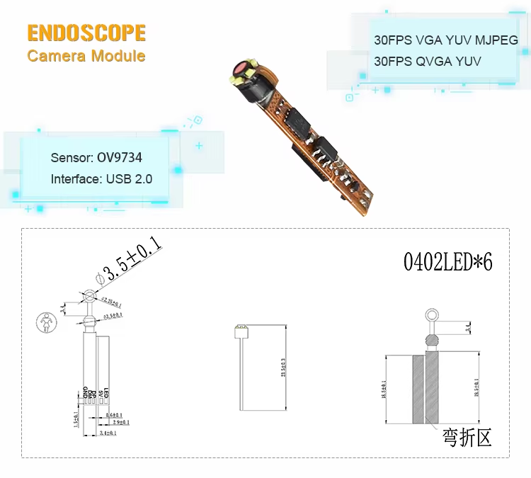 The OV9734 sensor, integrated into a compact MiniCamera Module, offers exceptional video quality, capturing 720p HD at 30 frames per second (fps) or VGA at 45 fps, while consuming 25% less power than its predecessor. This 1/9" Camera Module is specifically designed to meet the high video quality standards of leading video conferencing platforms. Its slim profile is ideal for ultra-thin bezel devices, with a z-height of only 2.5 mm and a y-dimension reduced by 47% compared to previous 720p sensors. the OV9734 sensor can be found in a range of modules, such as the 1mp Camera Module, Endoscope Camera Module, and Camera Module With LED, offering versatile solutions for different use cases.