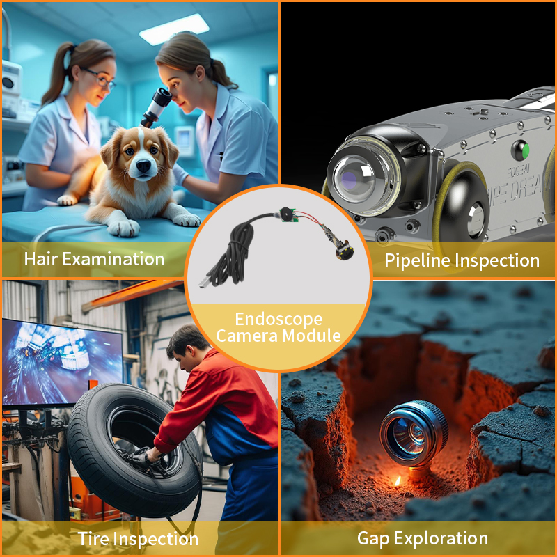 מודול מצלמת האנדוסקופ אוסף את התמונה הפנימית דרך העדשה האופטית הקדמית, ממיר אותה לאות חשמלי על ידי חיישן CMOS או CCD, ולאחר מכן מייעל אותה באמצעות שבב עיבוד תמונה להפחתת רעש ושיפור, ולבסוף מוציא אות וידאו בחדות גבוהה. מודולים מסוימים תומכים בשידור אלחוטי או בשידור אות סיבים אופטיים, המתאימים לתרחישי בדיקה רפואית או תעשייתית.